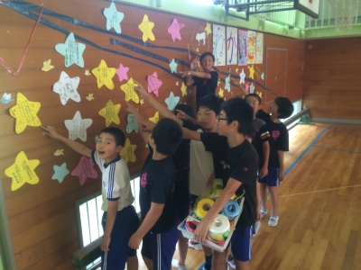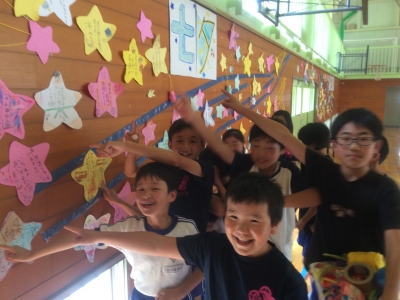 フリーIIに、全校の子どもたちは、願い事を見に来てくれました。