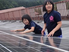 身近なとことでみられるような光電池・・・学校の屋上にもありました。