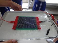 カチカチに凍らせた光電池を準備し,電力が発生するのか条件を整えて実験しました。
