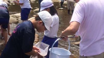 2016年7月12日 11時40分いわき海浜自然の家で、水質調査行っています。