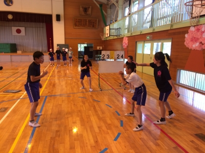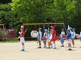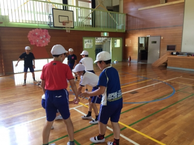 1年生紹介、学校 マルバツクイズ、ピンポン玉リレーを主に行いました。
