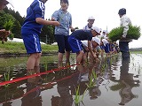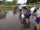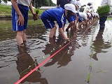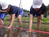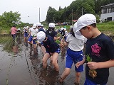 地域の皆様のご指導のもと,さくらっこ班の友達と協力しながら田植えをすることができていたようです。