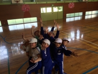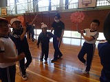 さくらっこ班に分かれて,上級生から下級生へ踊り方を伝えています。