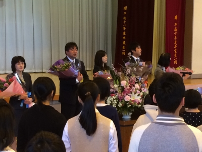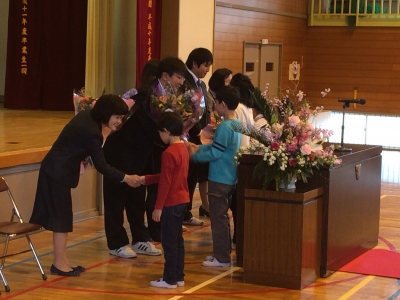 先生方からの別れの挨拶、花束贈呈、最後の見送りと、滞りなく進みました。