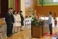 体育館に響く子どもたちの元気な校歌は、ご栄転・ご退職される先生方を勇気づけたことでしょう。