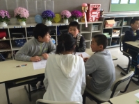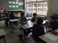 2016年4月14日 18時09分英語の学習をしていた時に、1年生が学校探検をしていました。