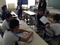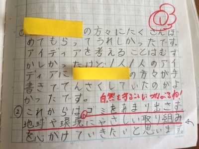 本日は、地域の工場の方が書いてくださった夢の工業製品の添削を見る時間です。