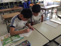 その後、教科の絵を書き、何の教科かを当てるゲームをしました。