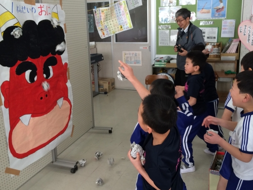 本日の2校時に、 1年生は心の中の鬼を退治するために、学級活動を行いました。