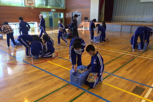 2016年1月28日 13時15分文化の館の皆さんが、たくさんの本を持ってきてくださいました。お目当ての本があるようで、目をキラキラさせながら探していました。