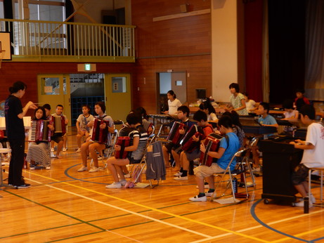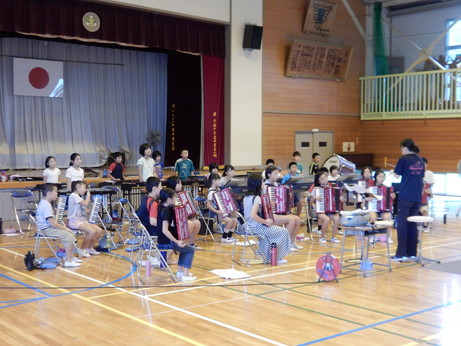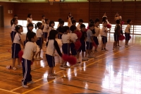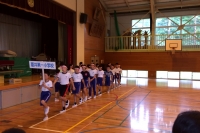応援団には男の子3人、女の子は進行、和太鼓、ドア開閉、BGM、励ましの言葉と1人1役で分担し、応援を盛り上げました。
