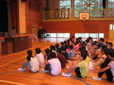 選手一人ひとりの名前を呼ぶ応援歌を歌ってもらった5年生と6年生は、恥ずかしがりながらもうれしそうにしていました。