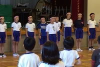 4年生が中心となり、本日5年生と6年生の陸上大会に出場する選手を応援しました。