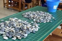 様々な石から、今までの宿泊学習の思い出をもとに想像を広げ、一人一人真剣に作成しました。準備から片付けまで、さすが夏井第一小学校と思わせる動きでした。先生方も、子供たち以上に熱心に作成しました。明日、お土産として持ち帰ります。保護者の皆様、お楽しみに!