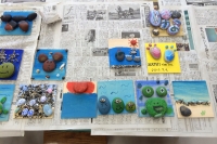 午前中にウォークラリーをして、『動の活動』をした後は、石から作品を作る『静の活動』に取り組みました。