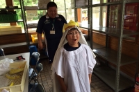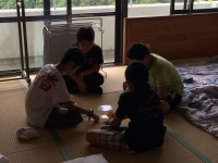 セレモニー係は、他の子どもたちがゆっくり休んでいる間に、キャンプファイヤーの準備をしています。所の方に教えていただきながら、蒔を組んだり、衣装などの道具を確認したりしました。準備は万端!