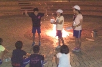 キャンプファイヤーは、セレモニー係が大活躍。火の神を召喚した厳粛な儀式から始まり、各班の出し物、フォークダンスと、日々の生活とは違った時間を過ごしました。