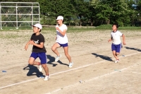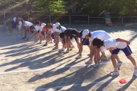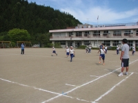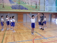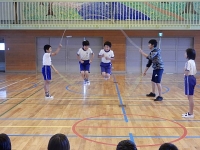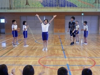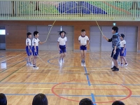 5年生は、ダブルダッチを披露しました。「いくぞ、せーの!」と跳ぶタイミングを全員で声を掛け合いながら、協力し合って演技しました。