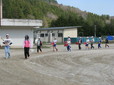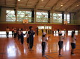 体育館で、上級生から下級生へ踊り方を伝えています。昼食前のプログラムです。是非みなさんも踊りの輪に参加してください。