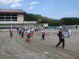 4月23日(木)、校庭を使っての鼓笛隊練習も始まりました。演奏をしながら歩き方の練習をしました。千本桜を見物に来ていた方も演奏をのぞいていました。