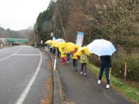 あいにくの雨でしたが、かさをさしての歩行の仕方や横断歩道の歩き方を学びました。