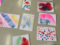 絵筆、ハケ、ストロー、ローラー、歯ブラシなどなどを使い、様々な技法を使って、ペーパーショップの商品を作成しました。