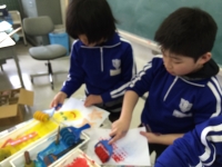 次回は、ペーパーショップの開店です。商品のペーパーを交換し合い、コラージュで一つの作品を仕上げます。どんな作品が出来上がるか、子どもたちも楽しみにしているようです。