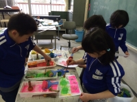 図工の授業開きということで、絵の具の楽しさを指導することができました。