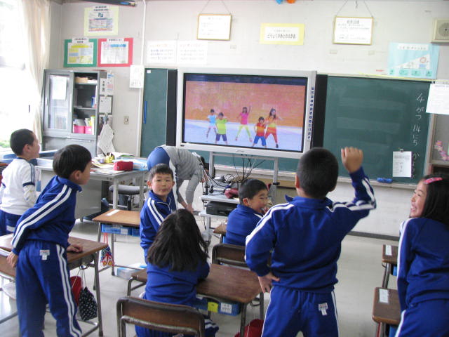 Eタイムが始まりました。昼休みビデオに合わせて英語に親しんでいます。