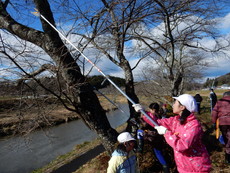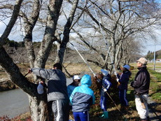 2日、河川愛護会と花咲く水辺の会の皆様にご協力いただき、枝打ちを行いました。