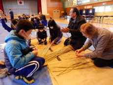 地域の老人会の皆様のご指導でしめ飾り作りが始まりました。