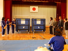 また、学区出身の方から卓球台3台と用具一式の寄贈があり、ご披露しました。クラブ活動などで使用させていただきます。ありがとうございました。