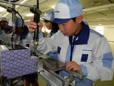 工場の見学を行い、ビス止めの体験などを機械を使って行わせていただきました。子どもたちは真剣な表情で取り組んでいました。