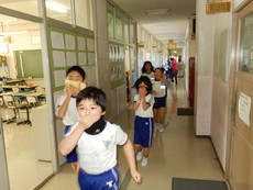 子どもたちは突然のベルに驚いていましたが、静かに放送を聴いて避難をしました。