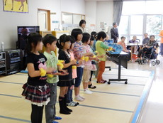 授業で学習した合奏とTVアニメのダンスを練習して、施設を利用されている皆さんの前で披露しました。