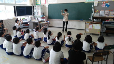 子どもたちは、講師の先生のお話を興味深く聞いていました。
