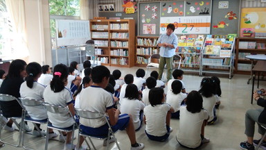 お昼休み時間に小野町ふるさと文化の館から講師として職員をお招きし、読み聞かせをしていただきました。