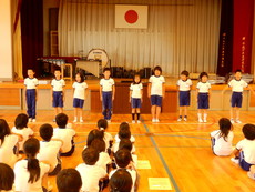 6日に全校集会が予定されていましたが、最強クラスの台風接近に伴う休校のため7日に実施しました。