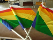 また、運動会では鼓笛に加わらなかった1・2年生もパレードに向けて、青・黄・赤のポンポンを持ち練習をがんばっています。