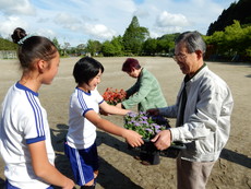 昨日、小野町人権擁護委員さんが来校され、人権の花として"アゲラタム"と"サルビア"の苗を届けてくださいました。