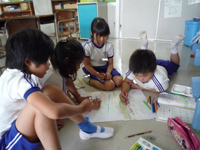 とても楽しそうに作業をしていました。どんな地図が完成するのか楽しみです。