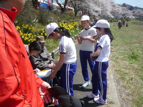 たくさんの観光客が訪れており、本校児童の千本桜サポータークラブの活動も始まりました。