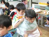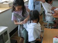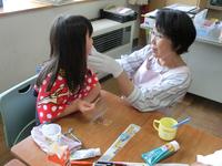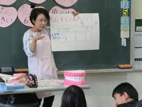 今日は2年生の歯科指導がありました。一番奥にある奥歯が6才臼歯です。6才のころから出てくる永久歯で、とても大事な歯です。まだ十分出ていないので、磨くのが難しく虫歯にもなりやすいのだそうです。鏡で確認した後、染出しをしました。他の歯よりも低いので、横からの磨き方を教えていただき実際に磨いてみました。初めてなのによく磨けていて、歯科衛生士の先生からお褒めの言葉をいただきました。ところで、とても感心したことがあります。実技に入る前に首にタオルを巻き洗濯ばさみで止めるのですが、何も指示は出しませんでしたが、近くの子ども同士で協力してやっているではありませんか。すばらしい2年生です。6才臼歯、大切にしてくださいね。