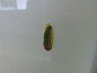 3年生が理科の学習でアオムシを飼っています。そのうちの3匹が逃げ出して、窓ガラスや窓の枠で動かなくなっていました。さなぎになろうとしていました。1匹はもうさなぎになっていました。もう少しで、羽化するところを見ることができそうです。初めに見つけたのが4年生。多くの4年生が興味津々に集まって見ていました。