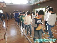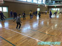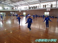 校内なわとび大会のトップバッターは2・5年生でした。2年生は持久とび(前とび)3分間に加え、5分間で後ろとびを連続何回できるかに挑戦しました。同様に5年生は、持久とび6分間と4分間で二重とびを何回連続でできるかに挑戦しました。