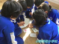 3年生の国語の学習で、一つの漢字の音読みと訓読みを用いてかるたを作成しました。漢字の読みから言葉を集め、それらを組み合わせてリズムの良い読み札を作りました。創意工夫が施されたユニークな絵札が並びました。かるた取りのルールも自分たちで話し合い、楽しく活動することができました。子どもたちからは、「漢字の読み方が勉強になった。」「漢字っておもしろい!」といった感想があげられました。