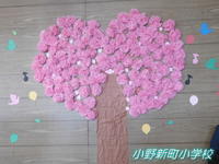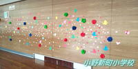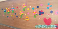 午後は、5年生が会場作成作業を行いました。在校生が分担して作った紙花や輪飾り、絵などを掲示し、きれいな会場がだんだんと出来上がってきています。