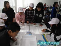 放射線に関する学習では、普段は目に見えない放射線を霧箱を通して目にすることで、今も放射線は身近にあることを学びました。県内各地のモニタリングポストの数値から、小野新町小学校の放射線量についても知ることができました。また、紙やプラスチックなどでも放射線を遮ることができることも実験を通して学ぶことができました。