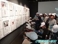 5年生が、三春町の「コミュタン福島」へ見学学習へ行きました。東日本大震災や原発事故に関する学習では、当時の新聞記事や、原発のモデル展示、年表などを見ながら、自分たちのふるさとで起こった出来事について真剣な眼差しで話を聞く児童が多くいました。