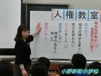 5年生が「人権」について学びました。「『人権』って何だろう?『人権を守る』ってどんなことだろう?」という5年生の問いを、人権擁護委員の先生方が分かりやすく教えてくださいました。ビデオを見たり、グループで話し合ったりしながら、たとえば「みんなで助け合うこと」、「いじめを許さないこと」などが人権を守ることである、ということを学べたようです。